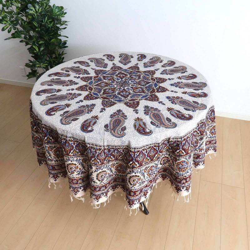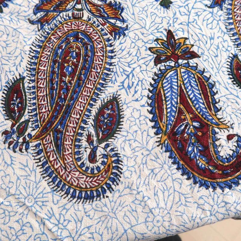 唐草模様はペルシャからシルクロードを伝って日本に伝来したと言われますが、エキゾチックなペイズリー柄はどことなく懐かしいレトロな雰囲気も持っていて思いのほか、インテリアに良く馴染みます。生地は、しっかりと厚みのある木綿100%の一枚布で、しなやかで柔らかな質感。シワになりにくいので、ソファカバーやベッドカバー、また、カーテンのような間仕切りに使ったりと大変使いやすいインテリアファブリックで、これ一枚でお部屋の印象がぐっと素敵になります。