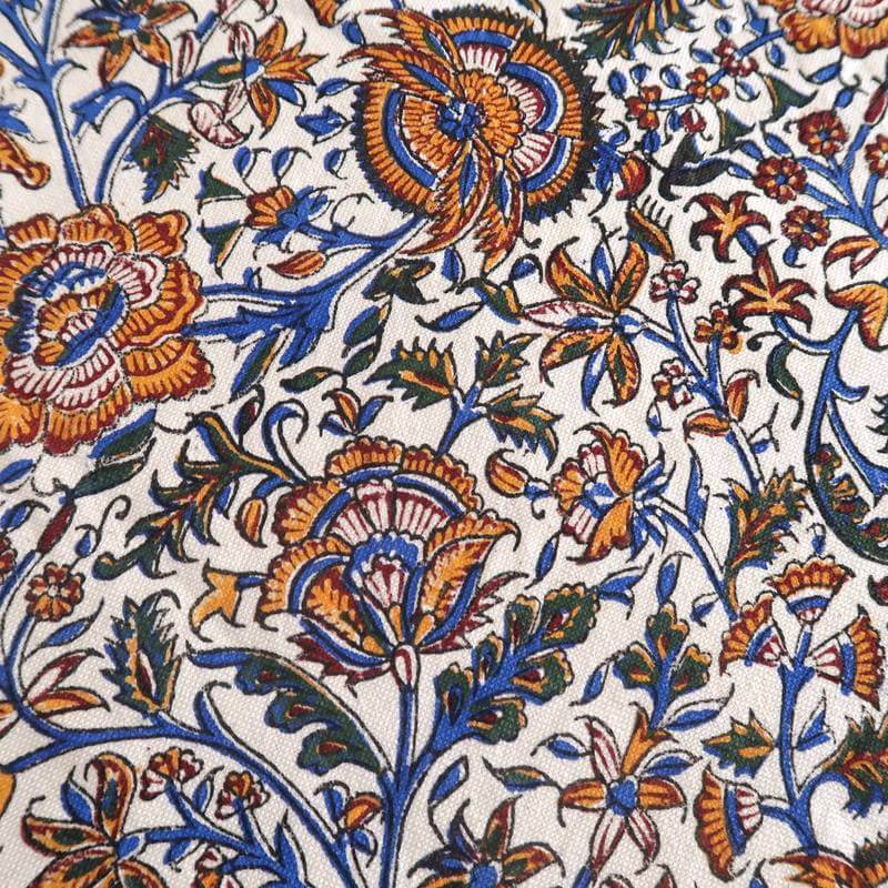 唐草模様はペルシャからシルクロードを伝って日本に伝来したと言われますが、エキゾチックなペイズリー柄はどことなく懐かしいレトロな雰囲気も持っていて思いのほか、インテリアに良く馴染みます。生地は、しっかりと厚みのある木綿100%の一枚布で、しなやかで柔らかな質感。シワになりにくいので、ソファカバーやベッドカバー、また、カーテンのような間仕切りに使ったりと大変使いやすいインテリアファブリックで、これ一枚でお部屋の印象がぐっと素敵になります。