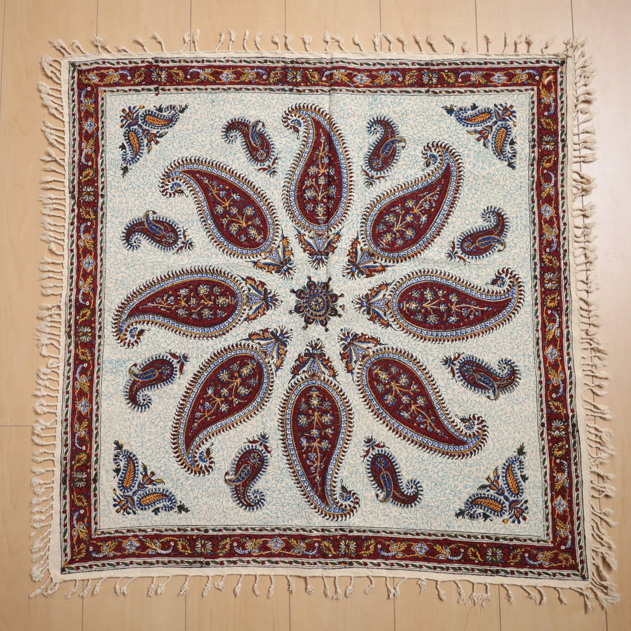 唐草模様はペルシャからシルクロードを伝って日本に伝来したと言われますが、エキゾチックなペイズリー柄はどことなく懐かしいレトロな雰囲気も持っていて思いのほか、インテリアに良く馴染みます。生地は、しっかりと厚みのある木綿100%の一枚布で、しなやかで柔らかな質感。シワになりにくいので、ソファカバーやベッドカバー、また、カーテンのような間仕切りに使ったりと大変使いやすいインテリアファブリックで、これ一枚でお部屋の印象がぐっと素敵になります。