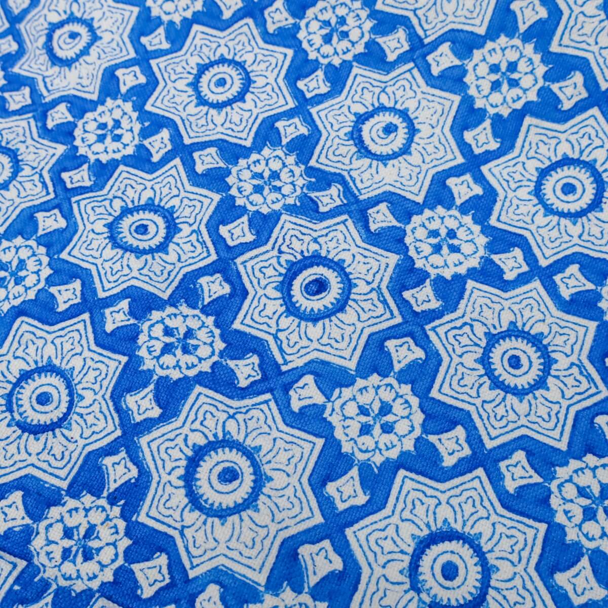 ペルシャ更紗(ガラムカール)は、年季の入った幾つもの手彫りの木型を使って、型を変え、色を変えて、何度も何度も手作業で型押しして染められます。イランの古都イスハファーンの工房で、職人さんが一枚ずつ丁寧に染め付け、まわりの房を手で撚り合わせて、全てハンドメイドで仕上げていきます。機械で一度に高速プリントされる布とは違う、手間のかけられた手仕事の職人技をぜひ楽しんでください。手作りの為、押し染めで染料が飛んだり擦れたりした部分がある場合もございます。程度の大きなものはコメントをつけておりますが、商品特性となります。
