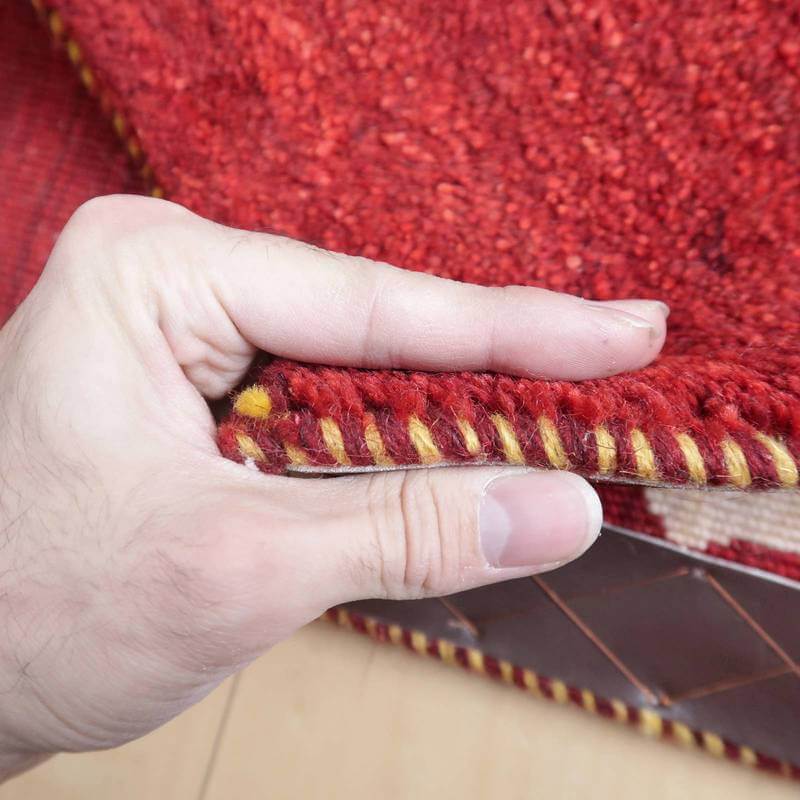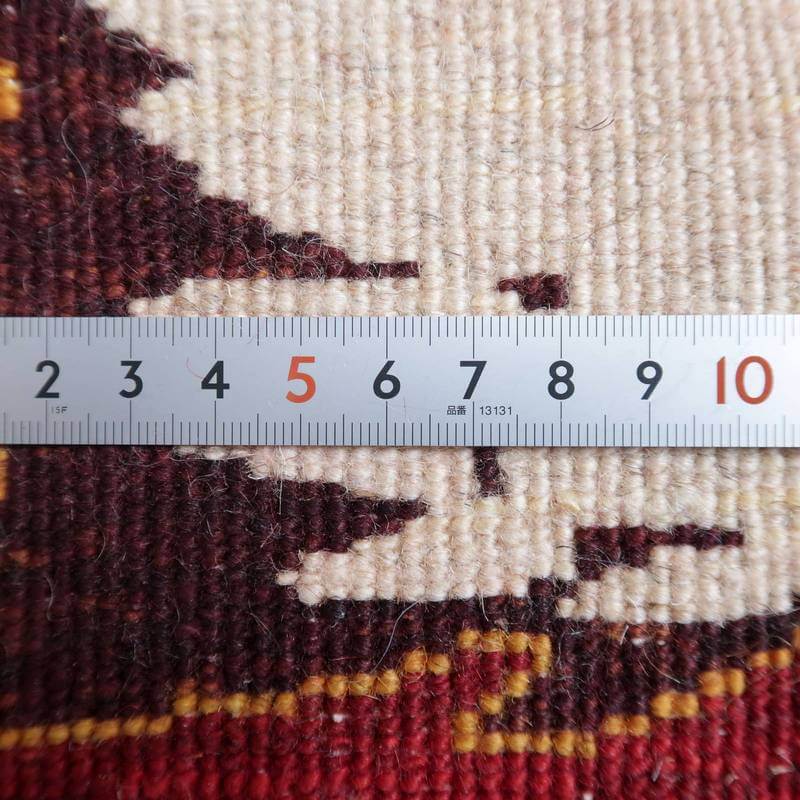 織りは、10cmあたり、およそ40から45目という普通のギャッベの数倍にもなる大変細かなルリバフ。抜け毛が少なく、手触りはふわりと柔らか。踏んだ時やんわりと沈み込む踏み心地です。腕の良い選りすぐられた織り子だけが手掛ける極上の手仕事です。