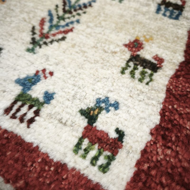 もともとギャッベは遊牧民の女性たちが、図案を起こさず心のままに織り上げる“絵を描くような手仕事”。