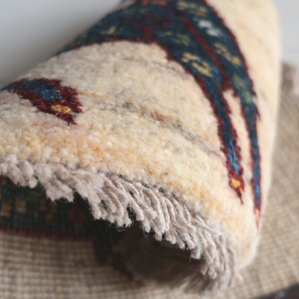 ラティーフで使用しているウールは、一般的なギャッベよりも 細く・しなやかな毛質を厳選しています。
