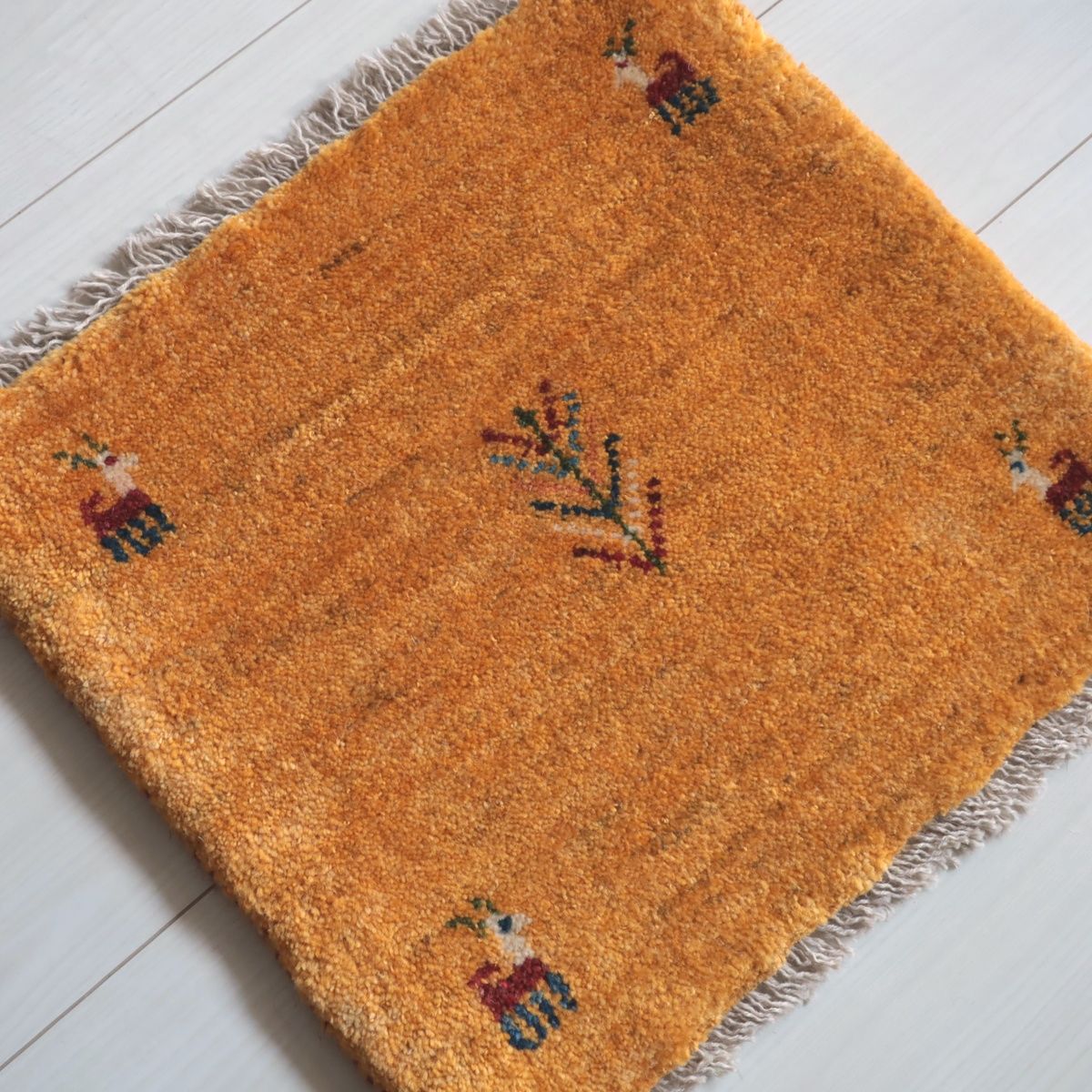 もともとギャッベは遊牧民の女性たちが、図案を起こさず心のままに織り上げる“絵を描くような手仕事”。