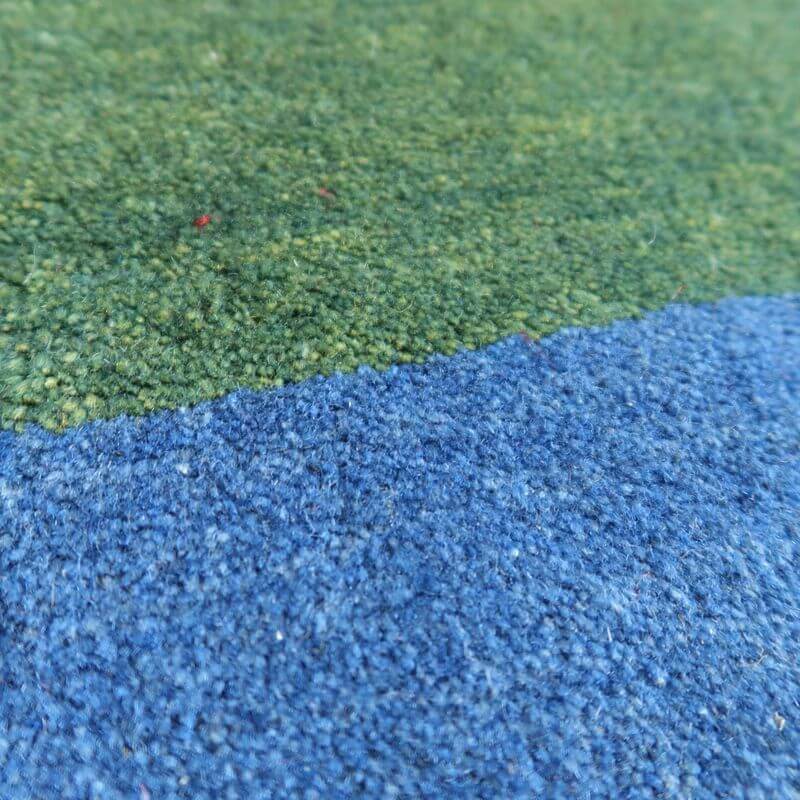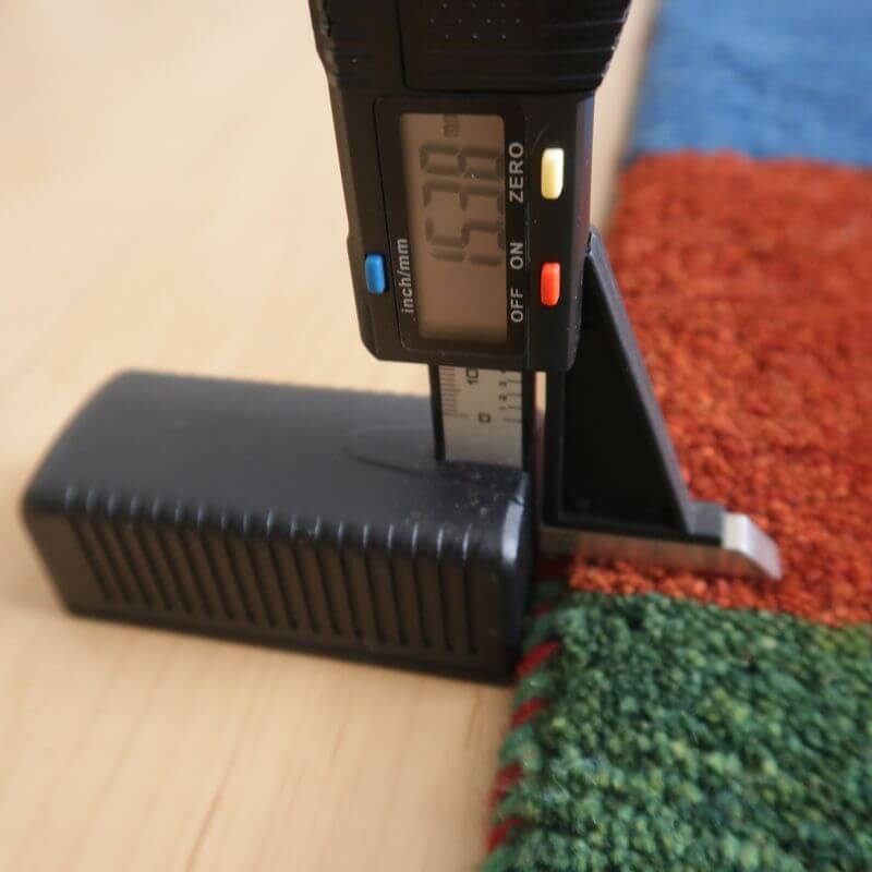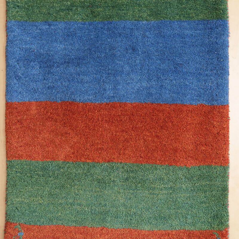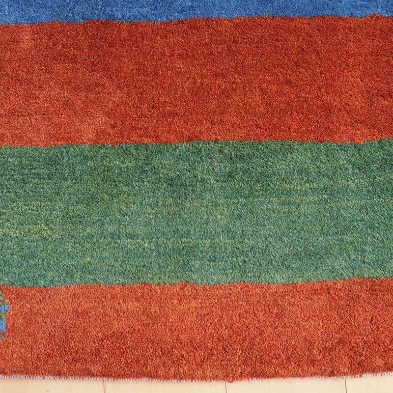 開封すぐの撮影でシワが見える写真があります。照明の違いで色合いが多少違って見えます。また、ギャッベは毛足に向きがあるので、見る方向で、明るかったり暗かったりも見えます。