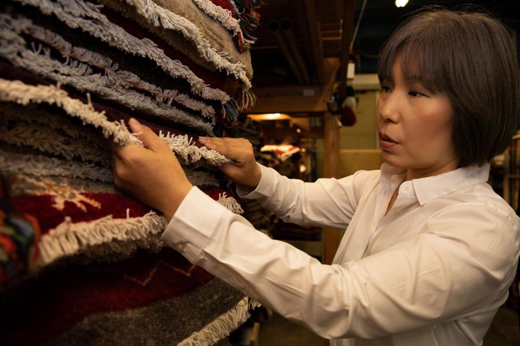 現在は、店頭でのご案内から洗浄・お手入れまで、日々数多くの絨毯と向き合いながら、その奥深い世界を学び続けている。