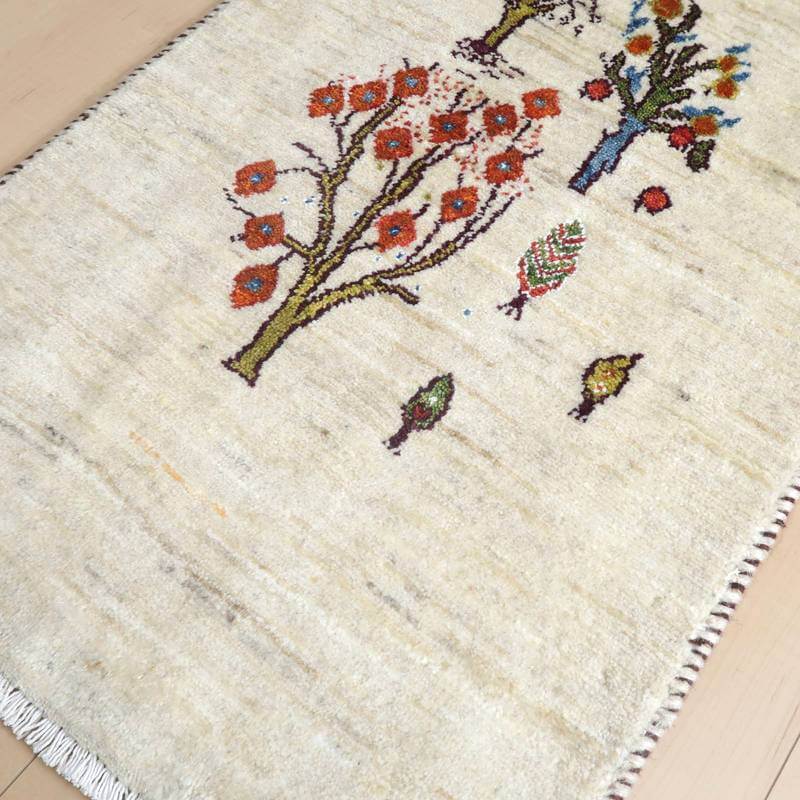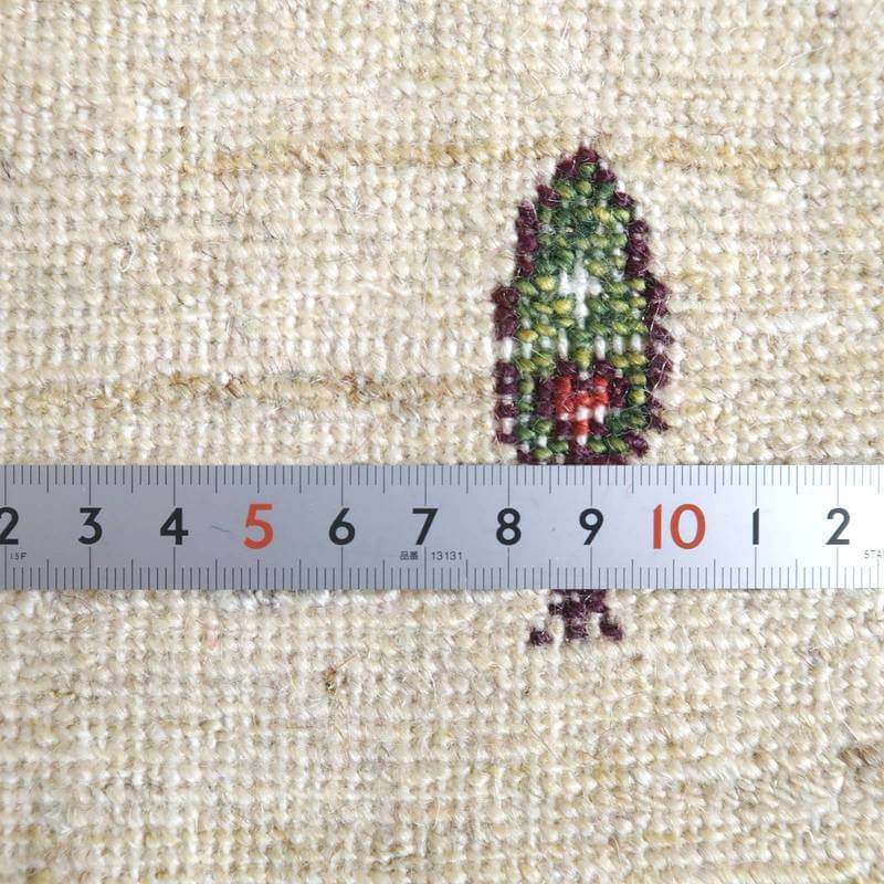 織りは、10cmあたり、およそ40から45目という普通のギャッベの数倍にもなる大変細かなルリバフ。抜け毛が少なく、手触りはふわりと柔らか。踏んだ時やんわりと沈み込む踏み心地です。腕の良い選りすぐられた織り子だけが手掛ける極上の手仕事です。