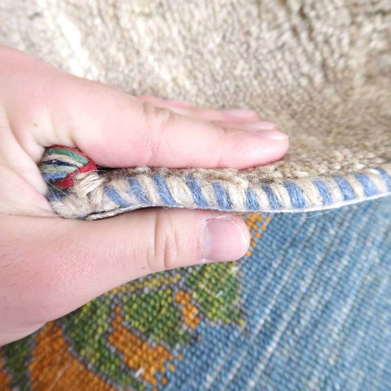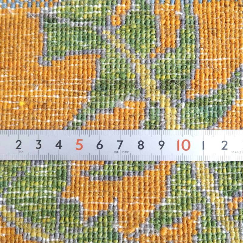 織りは、10cmあたり、およそ40から45目という普通のギャッベの数倍にもなる大変細かなルリバフ。抜け毛が少なく、手触りはふわりと柔らか。踏んだ時やんわりと沈み込む踏み心地です。腕の良い選りすぐられた織り子だけが手掛ける極上の手仕事です。